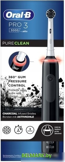 Электрическая зубная щетка Oral-B Pro 3 3000 Pure Clean Black D505.513.3 (черный) - купить в Минске