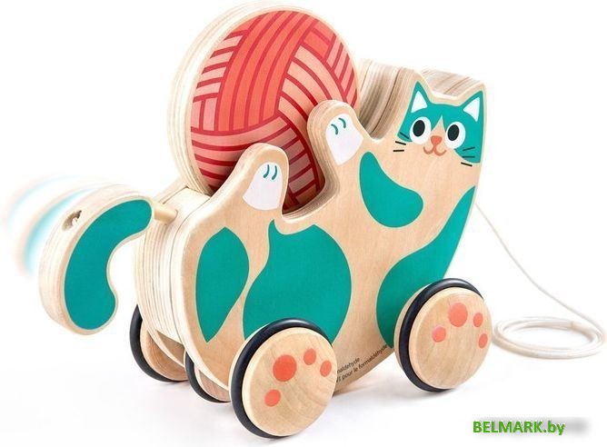 | Информация | Особенности: Котенок, которого можно тянуть за собой с шерстяной погремушкой. Погремушка медленно вращается, а хвост котенка качается, когда его тянут за собой. Погремушку из шерстяного мячика можно снять и играть с ней отдельно. Колеса с резиновыми ободами не царапают пол. Прекрасный компаньон для малышей, которые учатся ходить. Отлично подходит для стимуляции развития слуха. |