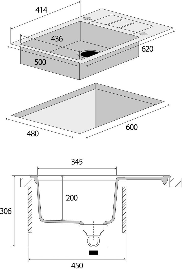 Код товара: 4897518 Рейтинг: 256 14| врезная на столешницу, искусственный камень, размеры: 62x50 см, глубина чаши: 20 см, в шкаф шириной от 45 см, клапан-автомат