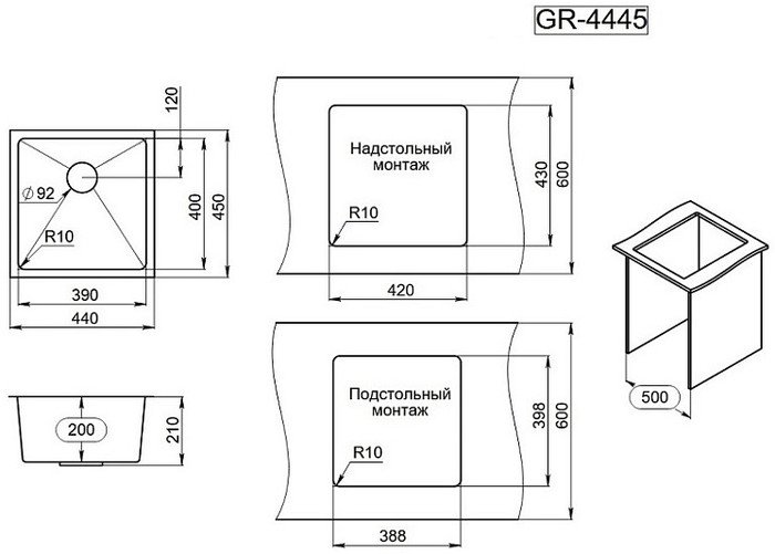 | Способ установки | врезная на столешницу, врезная под столешницу |