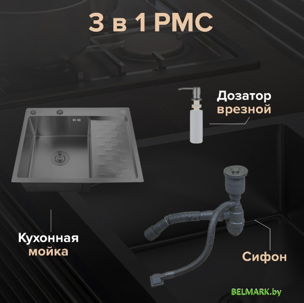 Кухонная мойка РМС MRK-6350BL-L (с дозатором) - купить в Минске