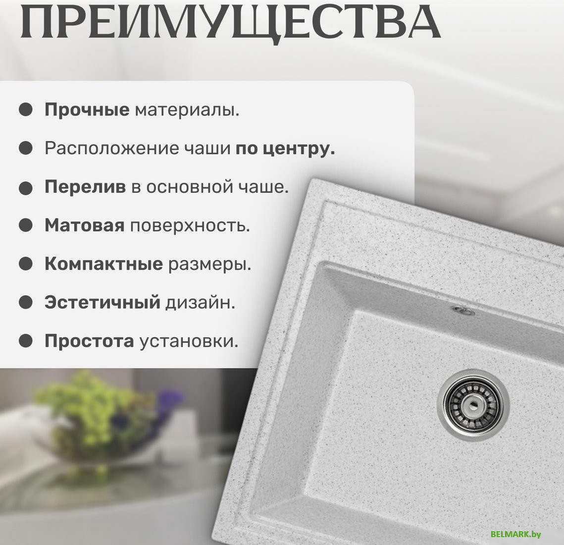 Код товара: 4713832 Рейтинг: 67 15| -35,31 врезная на столешницу, искусственный камень, фактура: матовая, размеры: 50.5x59.5 см, глубина чаши: 18 см