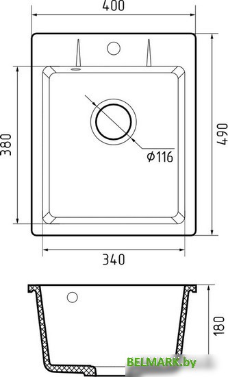 Код товара: 4480623 Рейтинг: 71 2| -8,55 врезная на столешницу, искусственный камень, размеры: 40x49 см, глубина чаши: 18 см, в шкаф шириной от 40 см