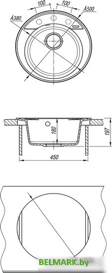 | Информация | Основные особенности: ? База установки: от 450 мм ? Тип монтажа: врезной ? Материал: кварцгранит ? Форма: круглая ? Метод производства: литье ? Толщина материала: 10 мм ? Дополнительные отверстия для установки аксессуаров ? Глубина чаши: 180 мм Комплектация: ? Крепления ? Сливная арматура с выпуском 3 ? (D-90мм) с круглым переливом ? Сифон с возможностью подключения посудомоечной или стиральной машины ?? Врезная установка - способ установки, при котором в столешнице вырезается отверстие под размер мойки. Данный параметр подразумевает, что мойки будут устанавливаться поверх столешницы. Как правило размер отверстия под мойку на 2 см (20 мм) меньше внешнего размера мойки. Пример: Внешний размер мойки - 800х500 мм. Размер отверстия под данную мойку 780х480 мм. |