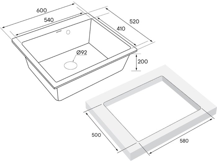 Код товара: 2357803 Рейтинг: 152 1| -4,9 врезная на столешницу, искусственный камень, размеры: 60x52 см, глубина чаши: 20 см, в шкаф шириной от 60 см