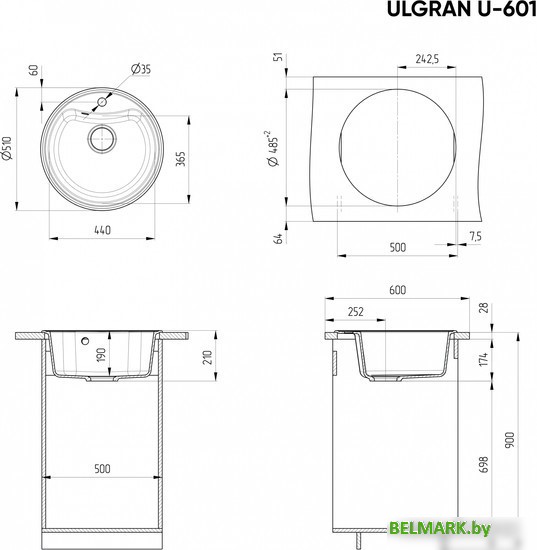 Кухонная мойка Ulgran U-601 (308 черный) - купить в Минске