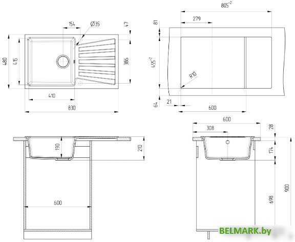 Код товара: 4211934 Рейтинг: 91 2| -28,73 врезная на столешницу, искусственный камень, размеры: 48x83 см, глубина чаши: 19 см, в шкаф шириной от 60 см