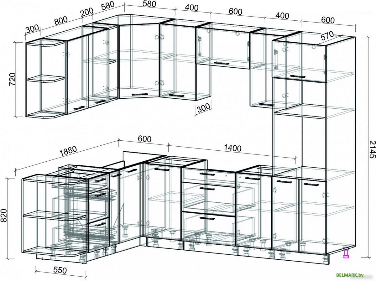 | Высота нижних шкафов | 82 см |