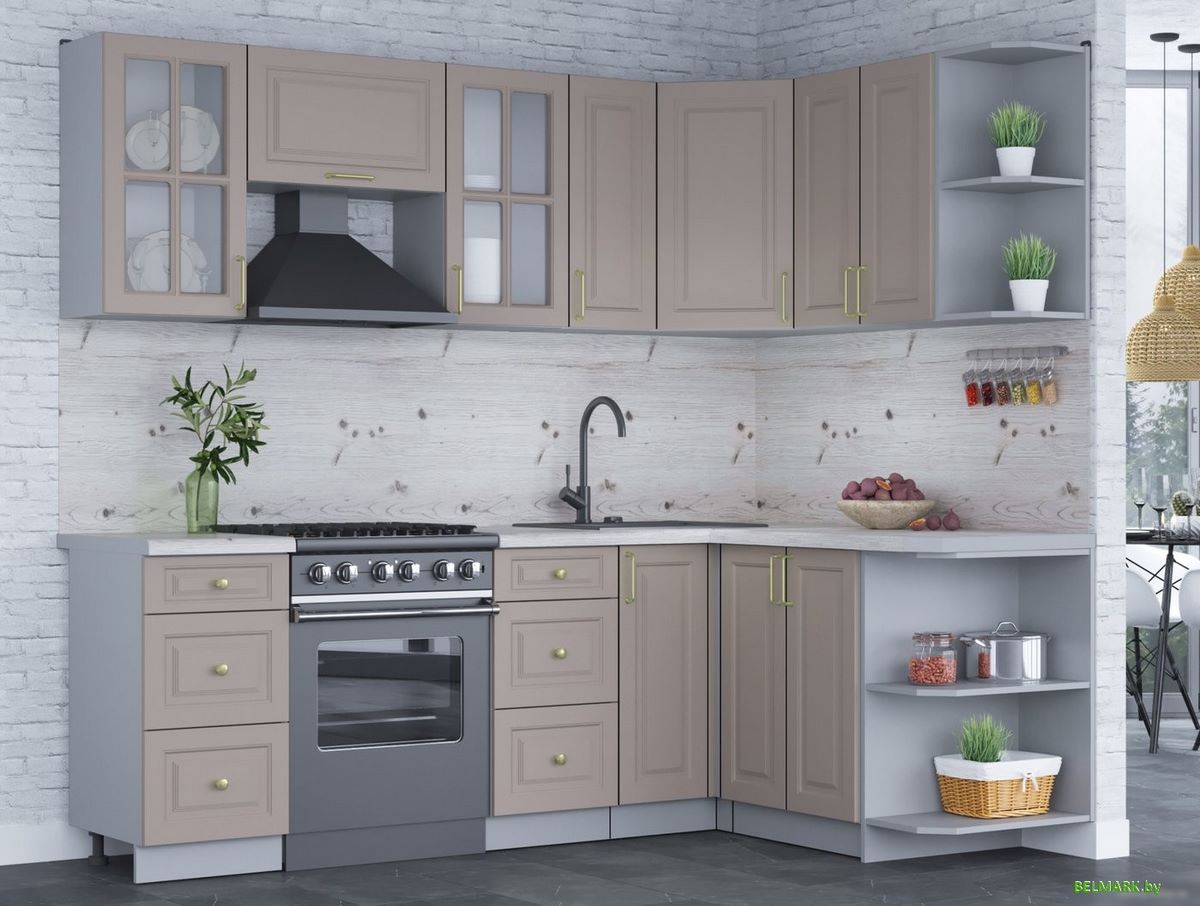 Готовая кухня Интерлиния Мила Шато 1.5x2.3 правая (луна/луна/бискайская сосна) - купить в Минске