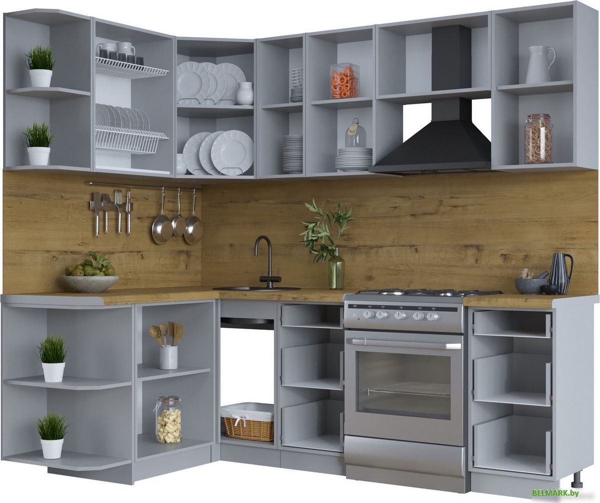 Код товара: 4302398 Рейтинг: 337 45| угловая, длина 230 см, ширина 150 см, каркас ЛДСП, фасад МДФ пленочный, установка мойки: врезная мойка