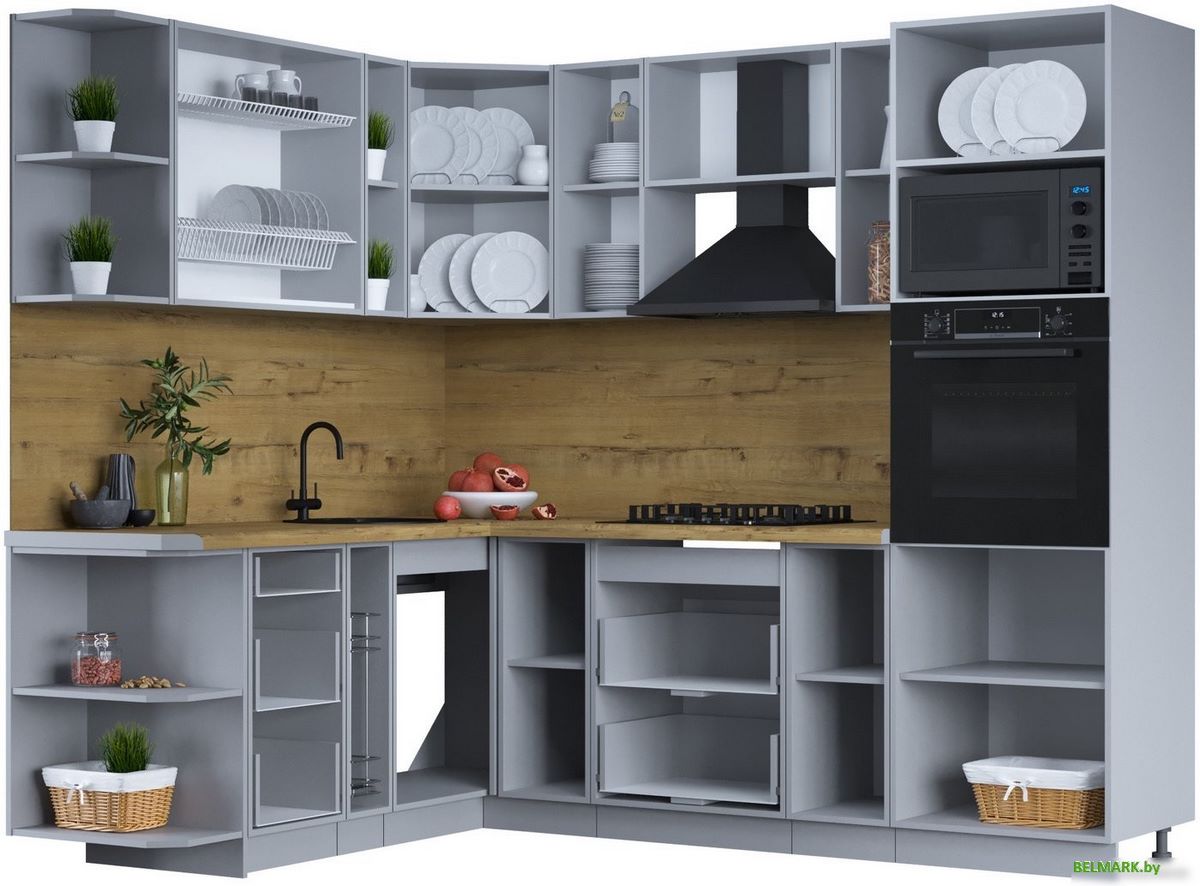 Код товара: 4303227 Рейтинг: 432 47| угловая, длина 240 см, ширина 188 см, каркас ЛДСП, фасад МДФ пленочный, установка мойки: врезная мойка, ширина шкафа под мойку 98 см
