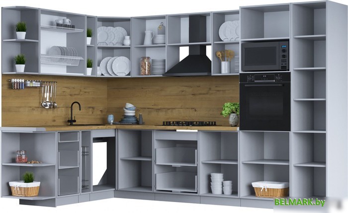 Код товара: 4218841 Рейтинг: 522 47| угловая, длина 320 см, каркас ЛДСП, фасад МДФ пленочный, установка мойки: врезная мойка, ширина шкафа под мойку 98 см
