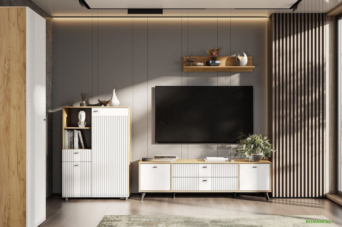 Код товара: 4896424 Рейтинг: 331 2| для гостиной, для жилой комнаты, каркас ЛДСП, фасад МДФ, 2 ящика, 2 дверцы, 180.1x40.1x52.6 см