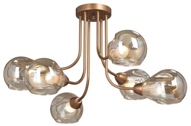 Код товара: 2862359 Рейтинг: 67 28| -32,43 люстра средней высоты, плафон янтарный (стекло), каркас медный