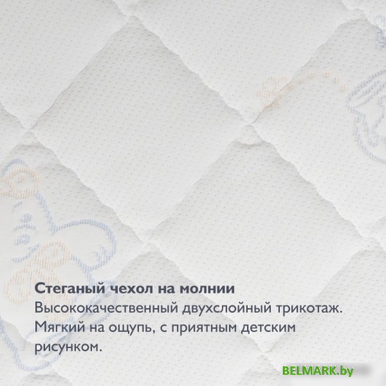 | Информация | Эконом-класс. Беспружинная ортопедическая модель для детей от рождения. В матрасе две стороны одинаковой средней жесткости (4 из 5) за счет использования натуральной кокосовой койры (по 10 мм с каждой стороны). Кокосовая койра, скрепленная натуральным латексом, признана одним из лучших наполнителей для детских матрасов, кроме того, она очень неприхотлива в уходе: быстро сохнет, не впитывает запахи, не боится бактерий и влаги. Упругие натуральные волокна хорошо держат форму, матрас остается как новый весь срок службы, спать на нем ребенку полезно и безопасно. Надежная поддержка позвоночника гарантирует здоровый сон, а это правильная осанка в будущем. В основе — упругая монолитная плита из высокоплотного холлкона. Это современный материал, он обладает целым списком полезных свойств: хорошо пропускает воздух и сберегает тепло, не накапливает статического напряжения, не боится влаги, сохраняет форму в течение всего срока службы. Слои наполнителей для удобства скреплены между собой специальным экологичным составом Simalfa (производство Швейцария). Состав на водной основе, без запаха, безопасен для ребенка и имеет сертификат качества. Стеганый трикотажный чехол сочетает приятный внешний вид и практичность. Приятная на ощупь ткань с дизайнерским рисунком создает дополнительный комфорт во время сна, а молния по периметру упрощает уход за матрасом. |