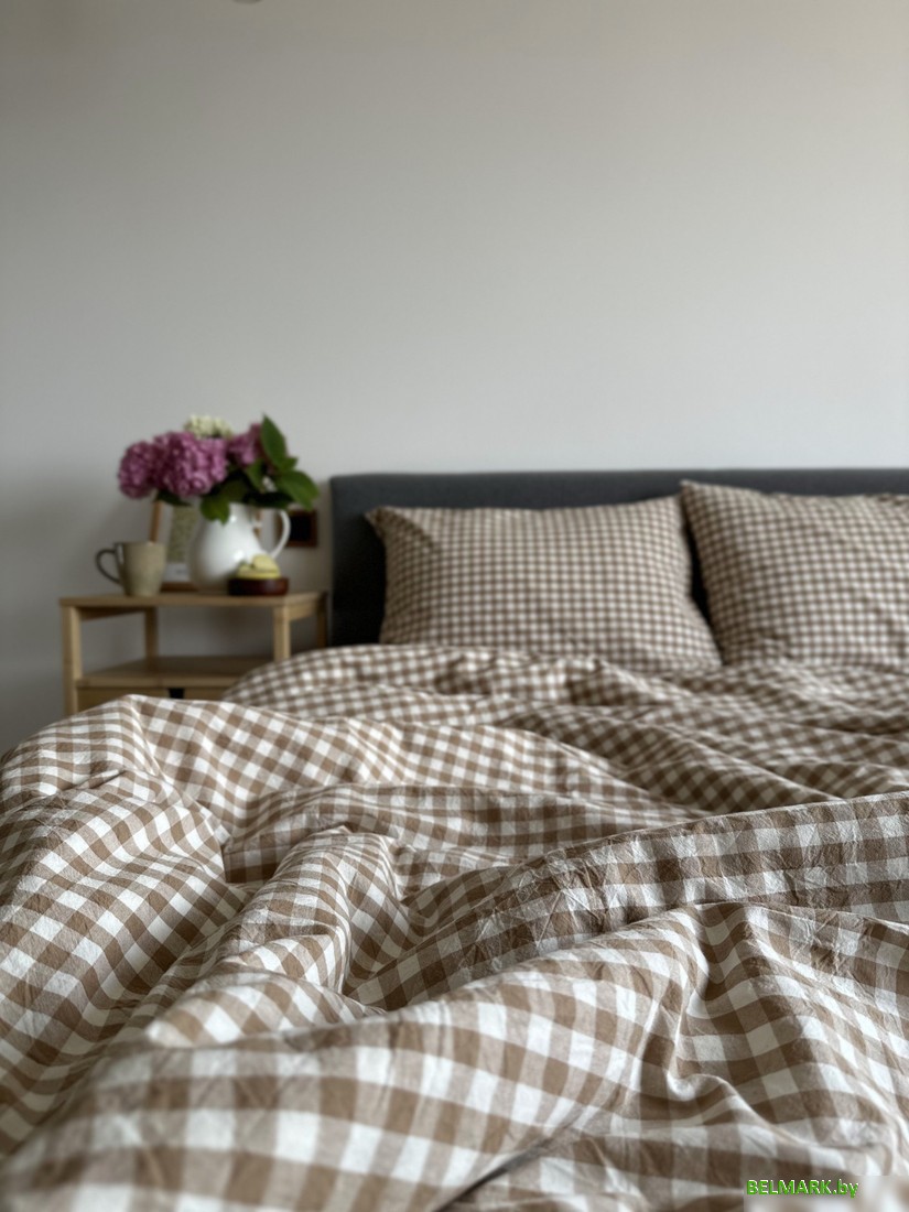 Постельное белье Царство сновидений Вареный хлопок Бежевая клетка 150-0143 (евро, нав. 70x70) - купить в Минске