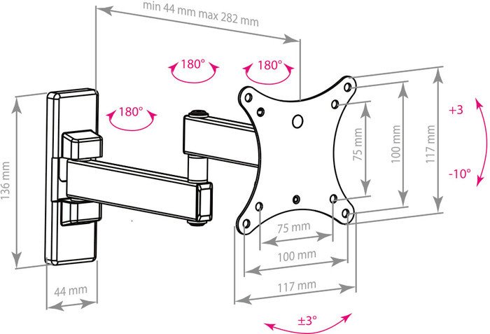 Код товара: 1177398 Рейтинг: 82 5| -85,02 настенный кронштейн для ЖК-телевизора 10-32", наклон 10°, поворот 90°, цвет черный
