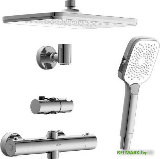 Код товара: 3911354 Рейтинг: 61 3| -211,79 душевая система (с верхним душем), настенный монтаж, термостатический смеситель, верхний душ 300 мм, ручной душ 97 мм