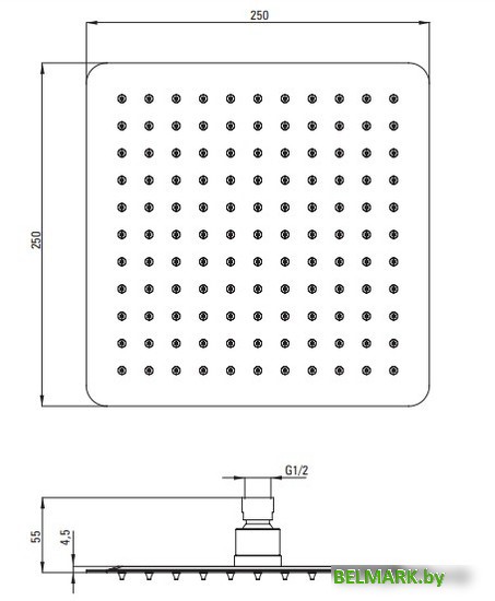 | Диаметр (ширина) верхнего душа | 250 мм |
