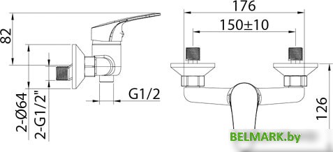 Код товара: 2446827 Рейтинг: 42 2| -16 однорычажный смеситель для душа, монтаж на стену