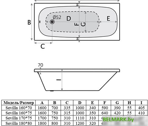 Ванна Alba Spa Sevilla 170x75 (с ножками и экраном) - купить в Минске