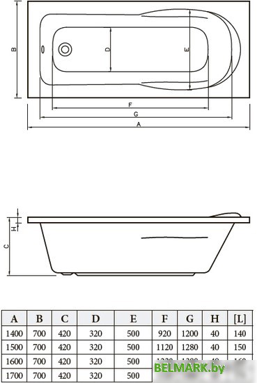 Ванна Bonito Home Malva 150x70 (с ножками) - купить в Минске