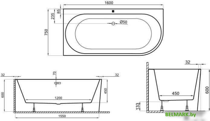 Ванна Polimat Sola 160x75 L (пристенная, белый) - купить в Минске